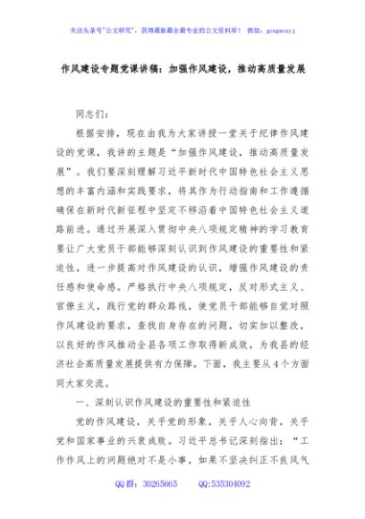 / 作风建设专题党课讲稿:加强作风建设,推动高质量发展