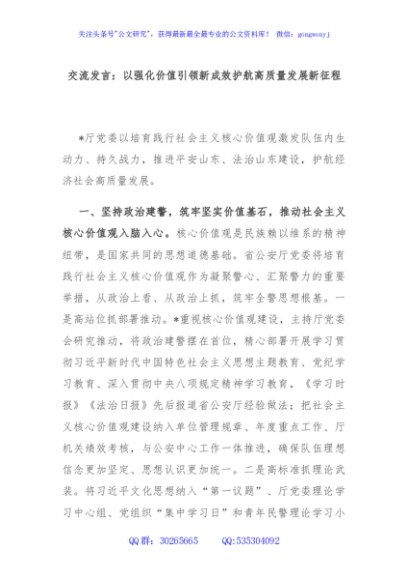 交流发言:以强化价值引领新成效护航高质量发展新征程