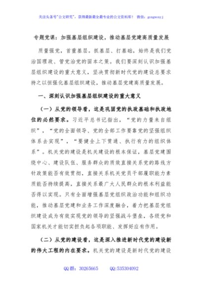 / 专题党课:加强基层组织建设,推动基层党建高质量发展