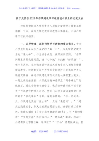 / 班子成员在2025年作风建设学习教育读书班上的交流发言