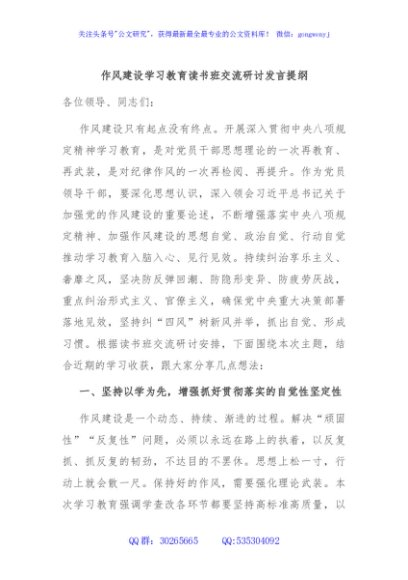 / 作风建设学习教育读书班交流研讨发言提纲