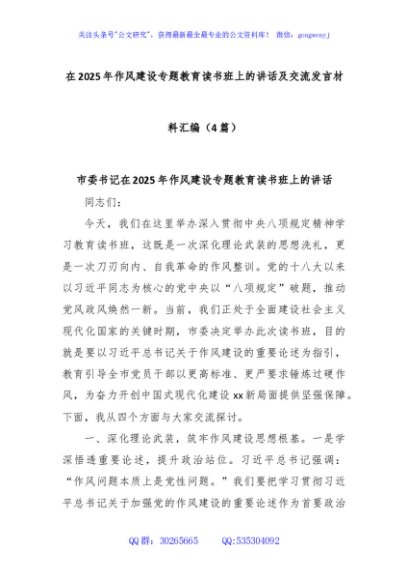 (4篇)在2025年作风建设专题教育读书班上的讲话及交流发言材料汇编
