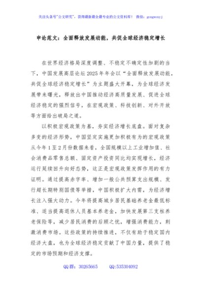 / 申论范文:全面释放发展动能,共促全球经济稳定增长