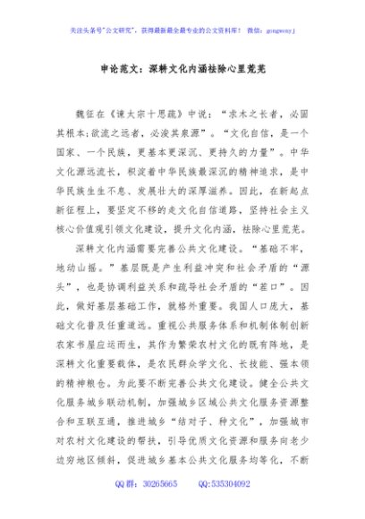 / 申论范文:深耕文化内涵祛除心里荒芜