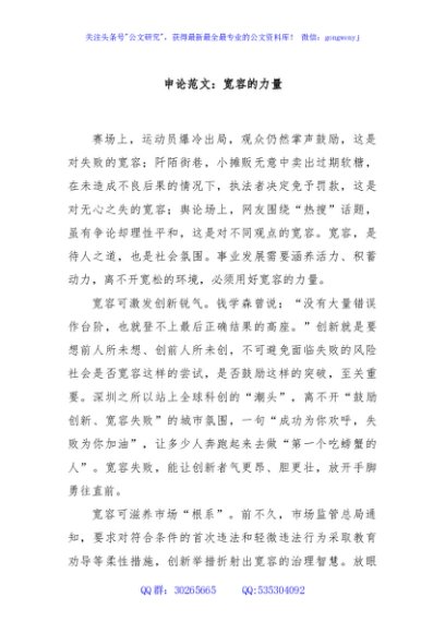 申论范文:宽容的力量