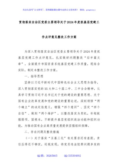 / 贯彻落实自治区党委主要领导关于2024年度抓基层党建工作点评意见整改工作方案