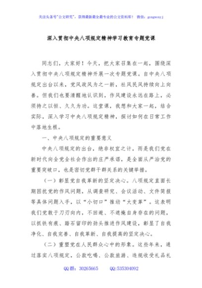 / 深入贯彻中央八项规定精神学习教育专题党课