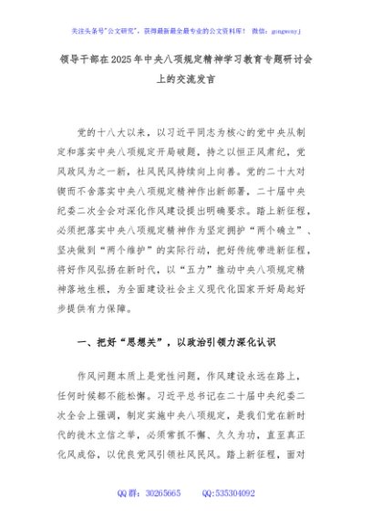 / 领导干部在2025年中央八项规定精神学习教育专题研讨会上的交流发言