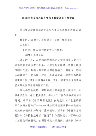 / 在2025年全市残疾人宣传工作交流会上的发言
