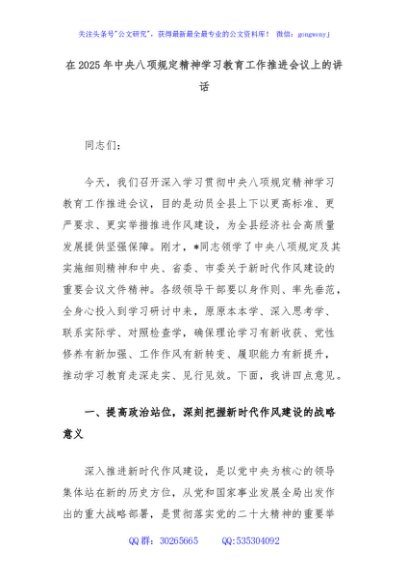 / 在2025年中央八项规定精神学习教育工作推进会议上的讲话