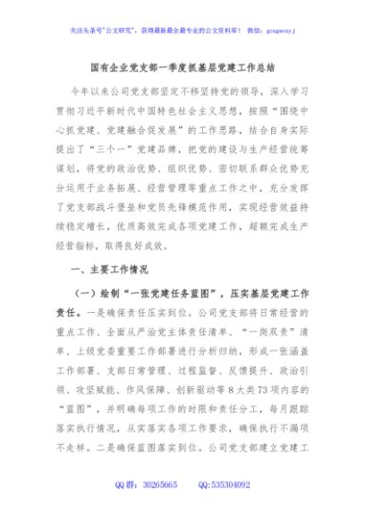 / 国有企业党支部一季度抓基层党建工作总结