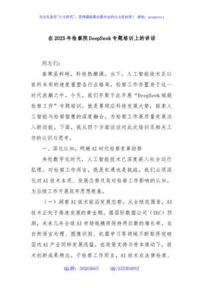 / 在2025年检察院DeepSeek专题培训上的讲话
