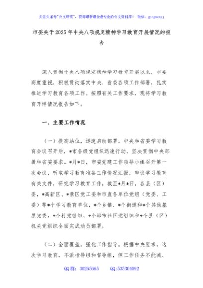 / 市委关于2025年中央八项规定精神学习教育开展情况的报告