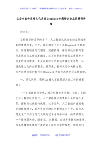 / 在全市宣传思想文化系统DeepSeek专题培训会上的授课讲稿