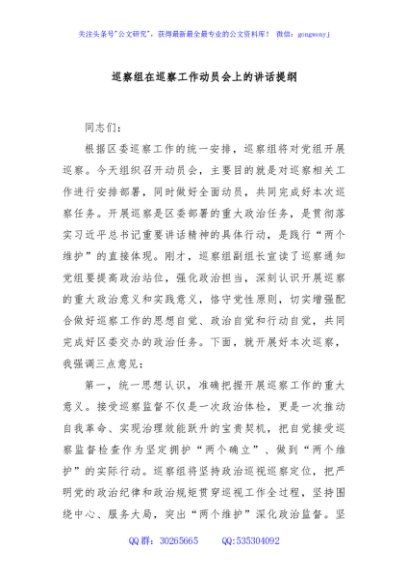 / 巡察组在巡察工作动员会上的讲话提纲