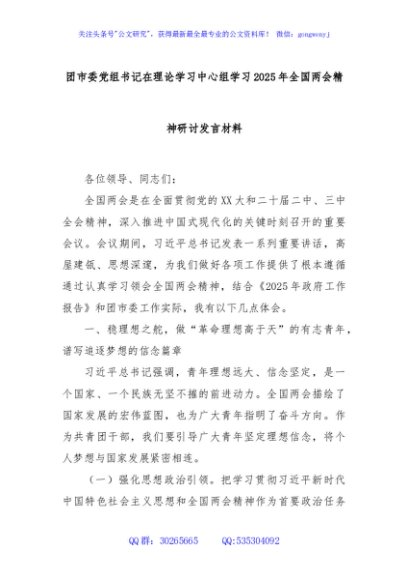 / 团市委党组书记在理论学习中心组学习2025年全国两会精神研讨发言材料