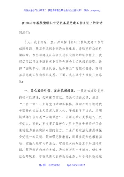/ 在2025年基层党组织书记抓基层党建工作会议上的讲话