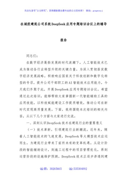 / 在城投建筑公司系统DeepSeek应用专题培训会议上的辅导报告