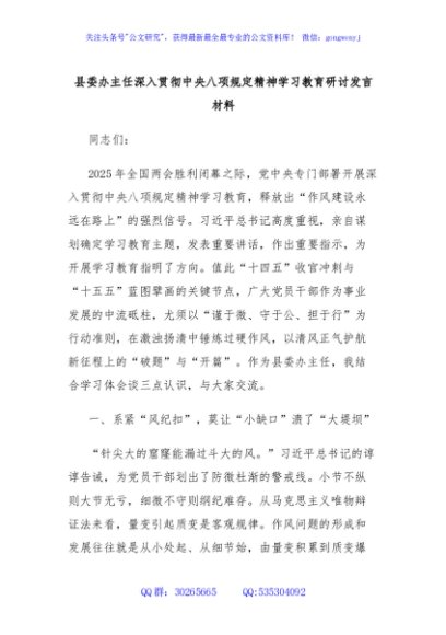/ 县委办主任深入贯彻中央八项规定精神学习教育研讨发言材料