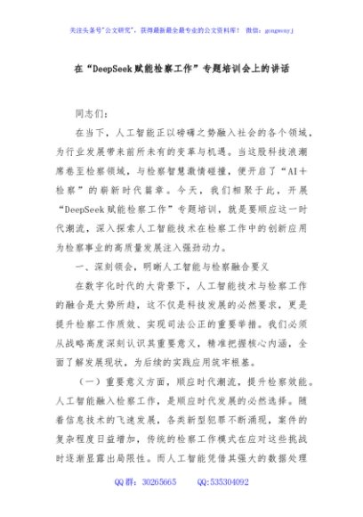 / 在“DeepSeek赋能检察工作”专题培训会上的讲话