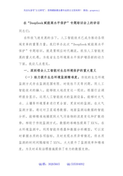 / 在“DeepSeek赋能高水平保护”专题培训会上的讲话