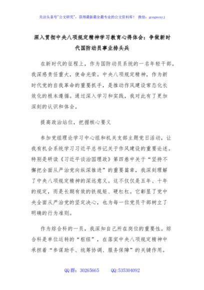 / 深入贯彻中央八项规定精神学习教育心得体会:争做新时代国防动员事业排头兵