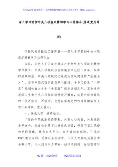 深入学习贯彻中央八项规定精神学习心得体会(普通党员通用)