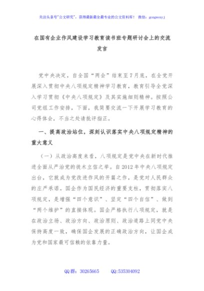 / 在国有企业作风建设学习教育读书班专题研讨会上的交流发言