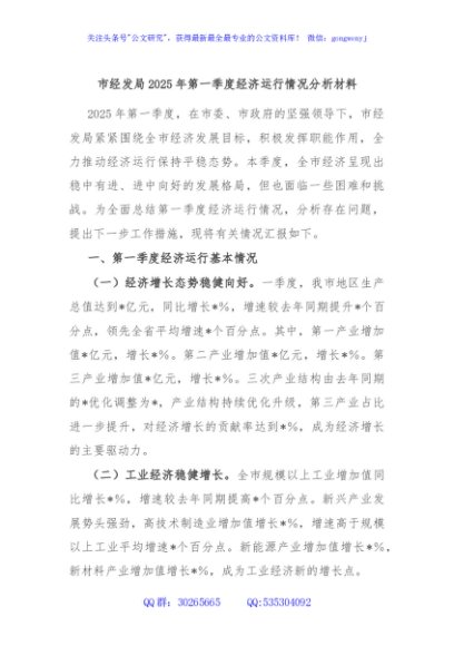 / 市经发局2025年第一季度经济运行情况分析材料