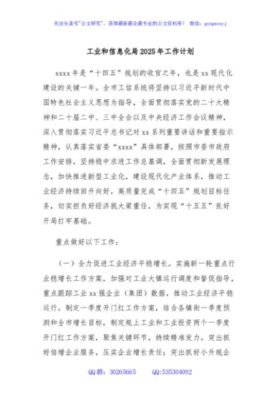 / 工业和信息化局2025年工作计划