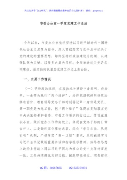 / 市委办公室一季度党建工作总结