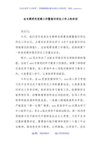 / 在专题研究党建工作暨意识形态工作上的讲话