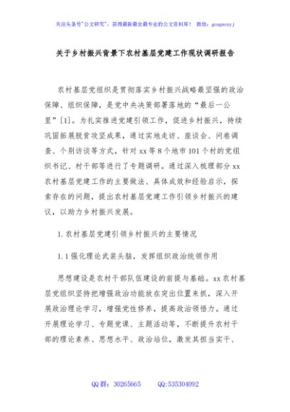 / 关于乡村振兴背景下农村基层党建工作现状调研报告