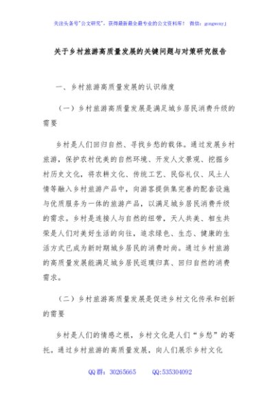 / 关于乡村旅游高质量发展的关键问题与对策研究报告
