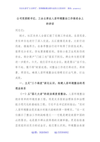 / 公司党委副书记、工会主席在人居环境整治工作推进会上的讲话