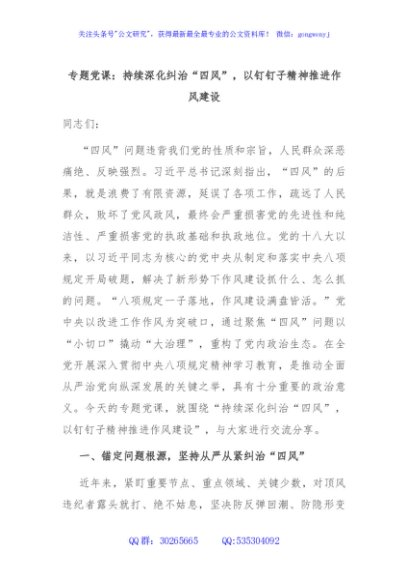 / 专题党课:持续深化纠治“四风”,以钉钉子精神推进作风建设