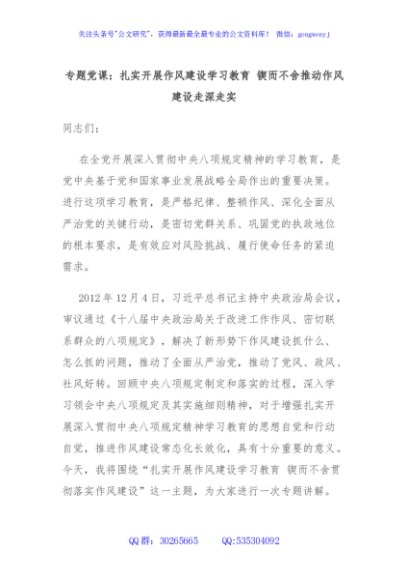 / 专题党课:扎实开展作风建设学习教育 锲而不舍推动作风建设走深走实
