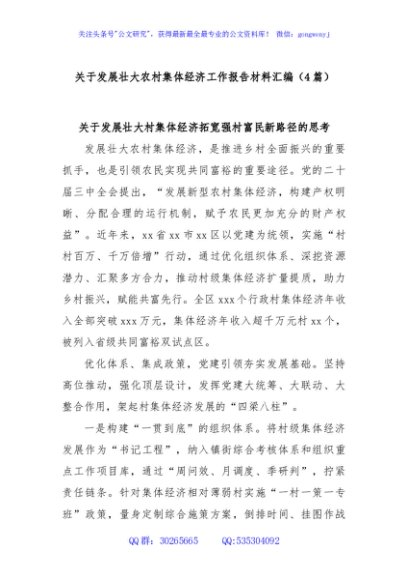 / (4篇)关于发展壮大农村集体经济工作报告材料汇编