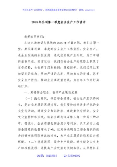 / 2025年公司第一季度安全生产工作讲话