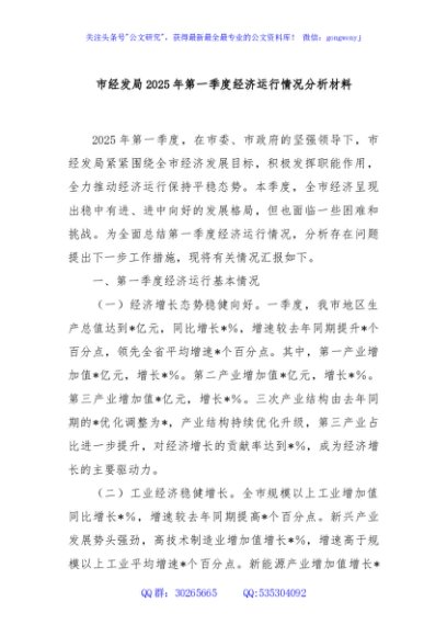 / 市经发局2025年第一季度经济运行情况分析材料