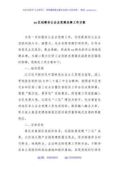 / xx区创建非公企业党建品牌工作方案