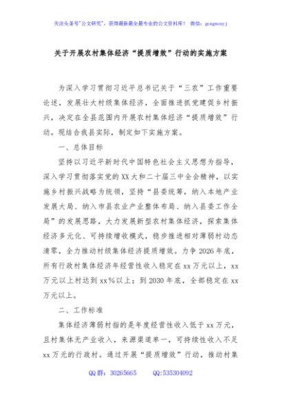 / 关于开展农村集体经济“提质增效”行动的实施方案