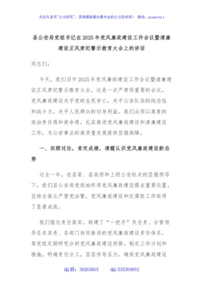 / 县公安局党组书记在2025年党风廉政建设工作会议暨清廉建设正风肃纪警示教育大会上的讲话