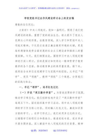 / 学校党组书记在作风建设研讨会上的发言稿