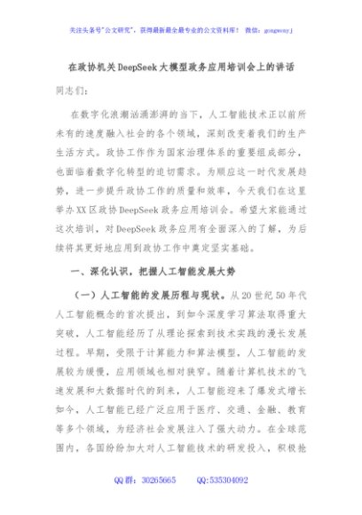 / 在政协机关DeepSeek大模型政务应用培训会上的讲话