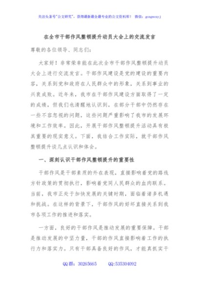 / 在全市干部作风整顿提升动员大会上的交流发言