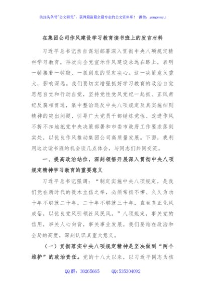 / 在集团公司作风建设学习教育读书班上的发言材料