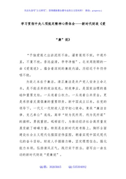 / 学习贯彻中央八项规定精神心得体会——新时代财政《爱“廉”说》