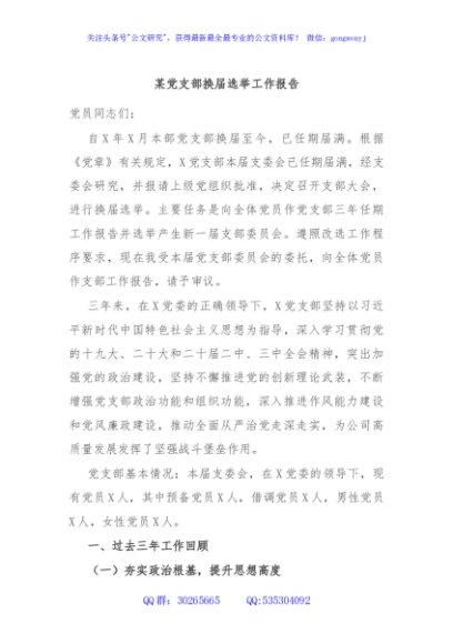 / 某党支部换届选举工作报告