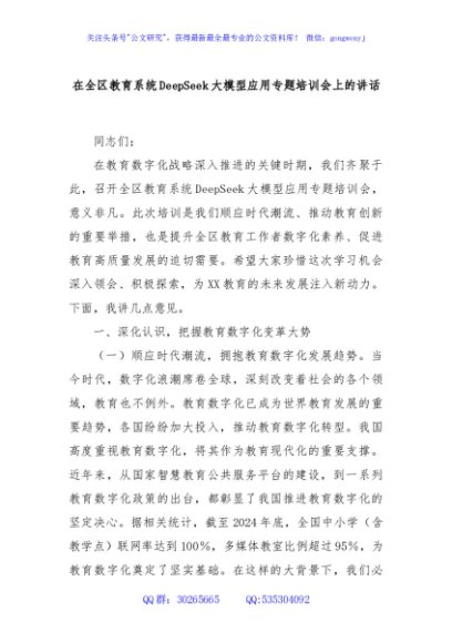 / 在全区教育系统DeepSeek大模型应用专题培训会上的讲话